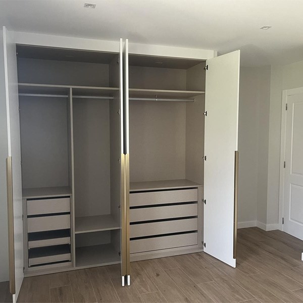 Total adaptabilidad a la decoración Con los armarios a medida que fabricamos en Pontevedra no solo puedes seleccionar el tipo de armario que deseas para tu estancia, sino también los tonos, el tipo de madera, el acabado, los detalles decorativos que quieres incluir... Desde Carpimoble te ofrecemos una alternativa perfecta para conseguir armarios empotrados a medida, vestidores o cualquier otro concepto de mueble que desees para completar el mobiliario de tu vivienda o de tu oficina o local comercial. Tú eliges la distribución de tu armario El comprar un armario convencional puede limitar tu idea de repartición de espacio o incluso hacerte perder aprovechamiento del mismo. En nuestra carpintería de madera te ayudamos a conseguir un plus en organización con nuestros armarios a medida en Pontevedra. Podrás escoger entre armarios sin puertas, armarios con puertas, armarios con cajoneras, armarios modulares, armarios con puertas correderas, armarios esquineros, armarios de entrada, vestidores a medida... Calidad a grandes precios ¿Quieres comprar un armario ropero económico? ¿Eres de los que busca el mejor precio en su armario a medida? En Carpimoble ofrecemos una alternativa sumamente económica en este tipo de producto, de manera que bajo nuestro nombre consigas armarios a medida económicos y de la máxima calidad. Podrás controlar el precio de tu armario a medida escogiendo entre unos u otros materiales, así como en función del tamaño y la distribución del mismo. Máximo aprovechamiento del espacio La mayor ventaja de los armarios a medida que fabricamos en Pontevedra es que, como su propio nombre indica, son totalmente a personalizados. Podrás escoger la medida que se ajuste a la perfección al espacio del que dispones, así como seleccionar el tipo de distribución y organización del armario con el que obtener un mayor aprovechamiento del mismo. En Carpimoble nos adaptamos a tus gustos y al espacio, fabricamos el armario a medida en Pontevedra que se ajustará a las dimensiones de tu hogar.